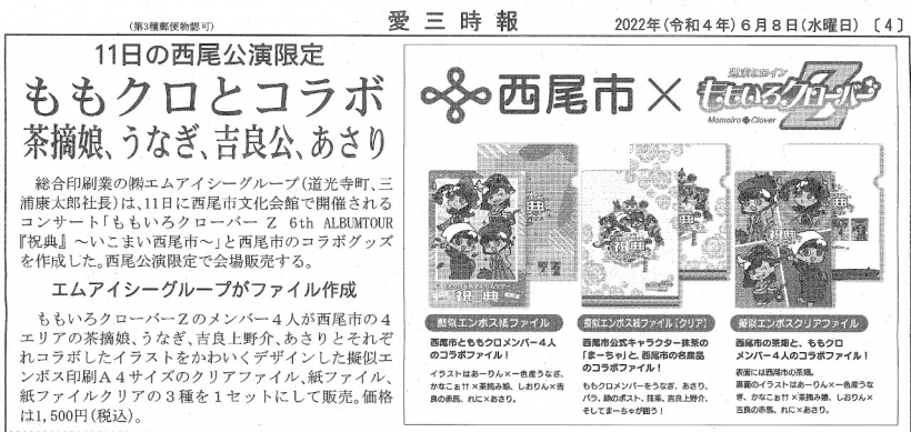 愛三時報にももクロとのコラボクリアファイルの記事が掲載されました
