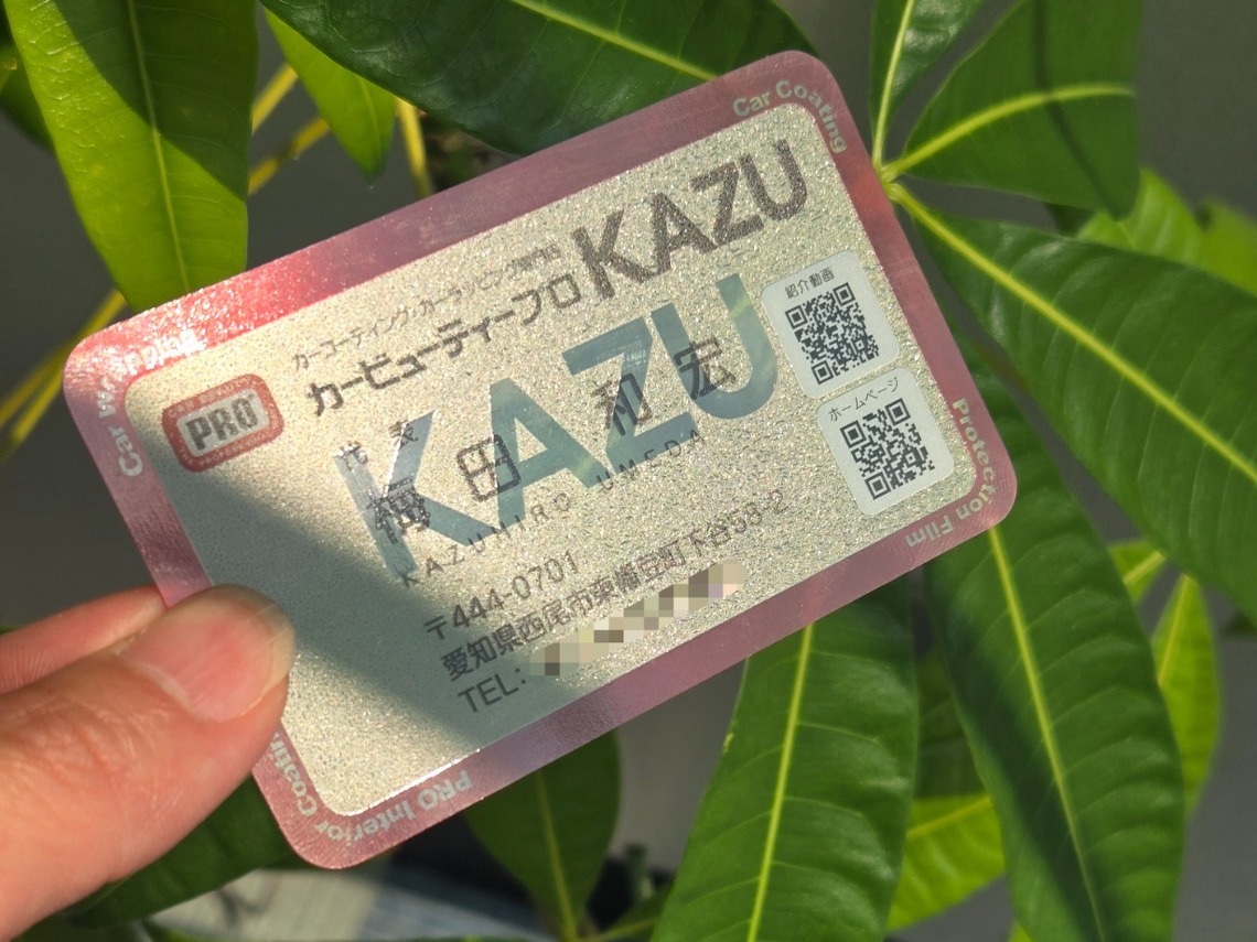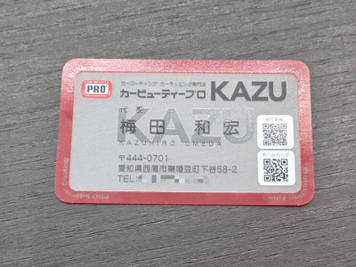店舗名でもある「KAZU」の文字を印象的に見せたいというご要望にお応えし、擬似エンボス印刷を利用して中央に大きく配置。